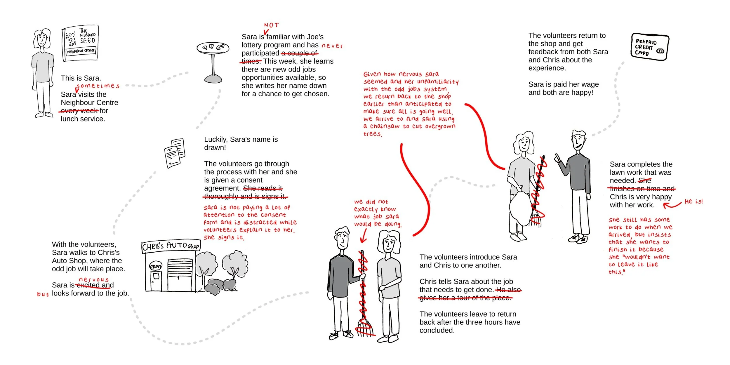 As part of Edmonton’s RECOVER urban wellness initiative, three citizens developed a prototype to bridge connections between housed and unhoused neighbours in Old Strathcona. Initially focused on creating paid “odd job” opportunities for unhoused residents, the project evolved into a broader exploration of how work and shared experiences can foster dignity, belonging, and mutual respect in communities.